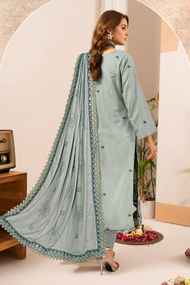 HEAVY EMBROIDERED ZARI SLUB CHAMKI DHANAK SHIRT